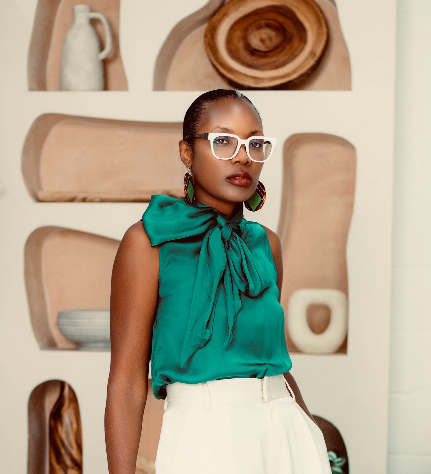 Introducing the Yvonne top in Emerald green. The perfect top for any season or event. Can be dressed or down. The fabric is silky, breathable and soft to touch. Elevate your style. Model is wearing a small. Fabric: Tencel Satin.